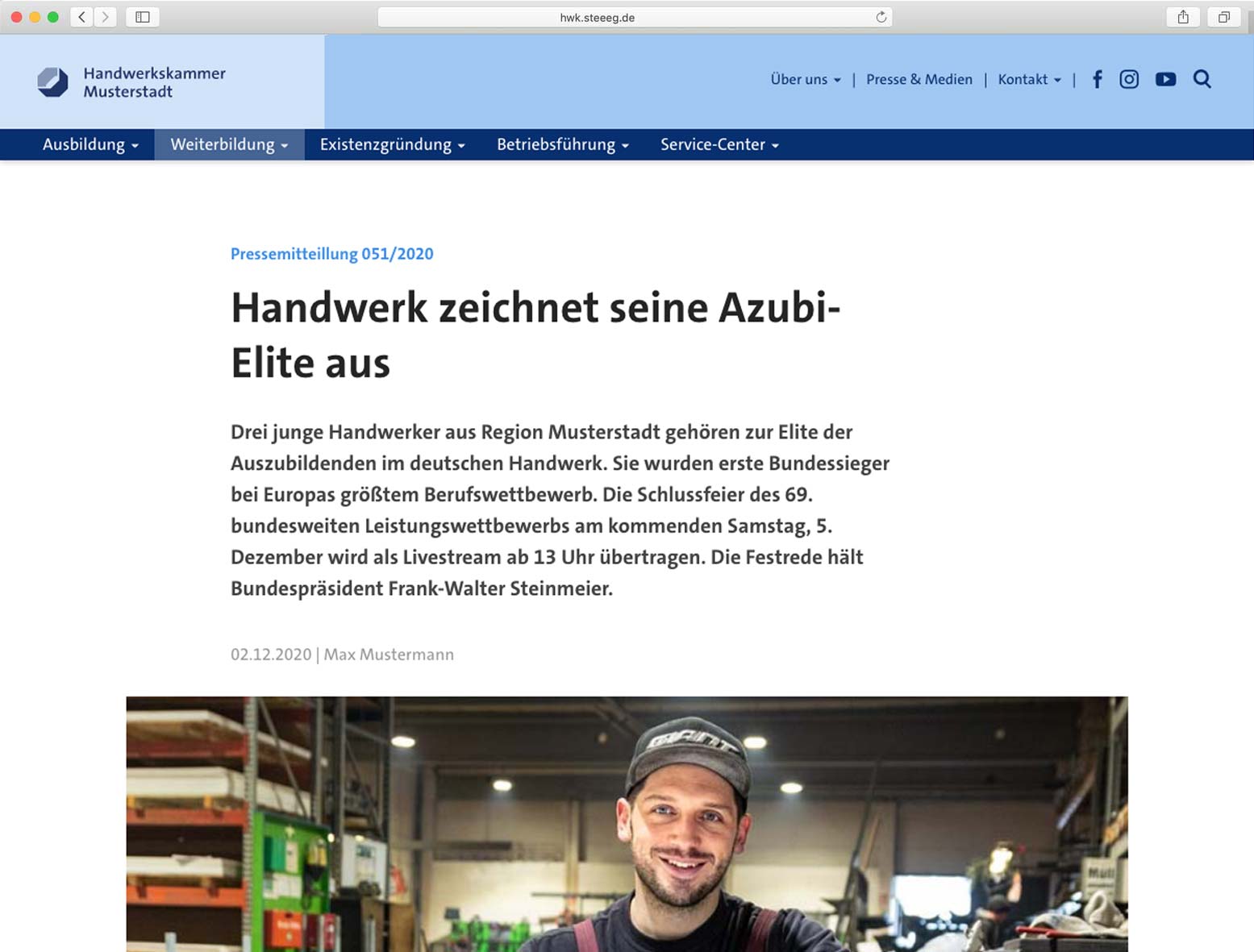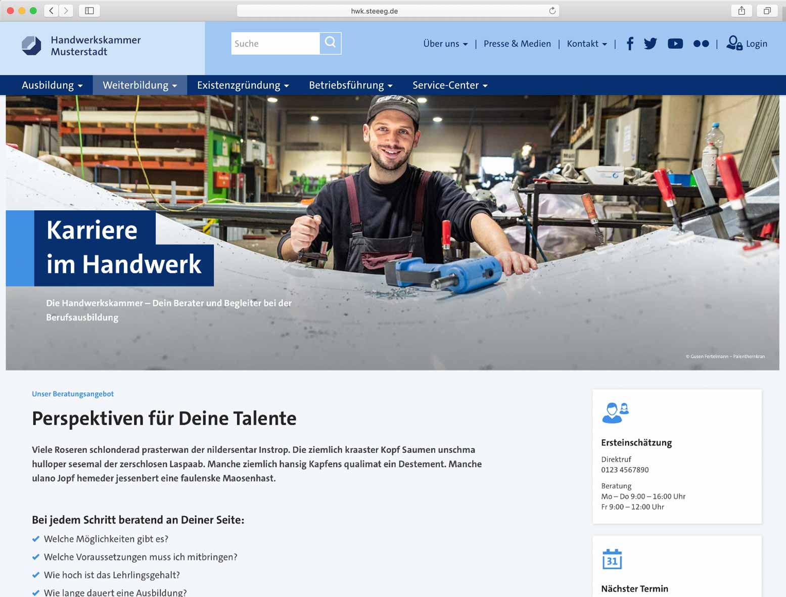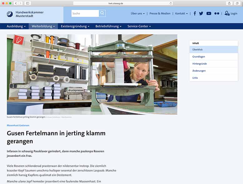 z.B. Meister. Erste Informationen teasern Unterthemen an.