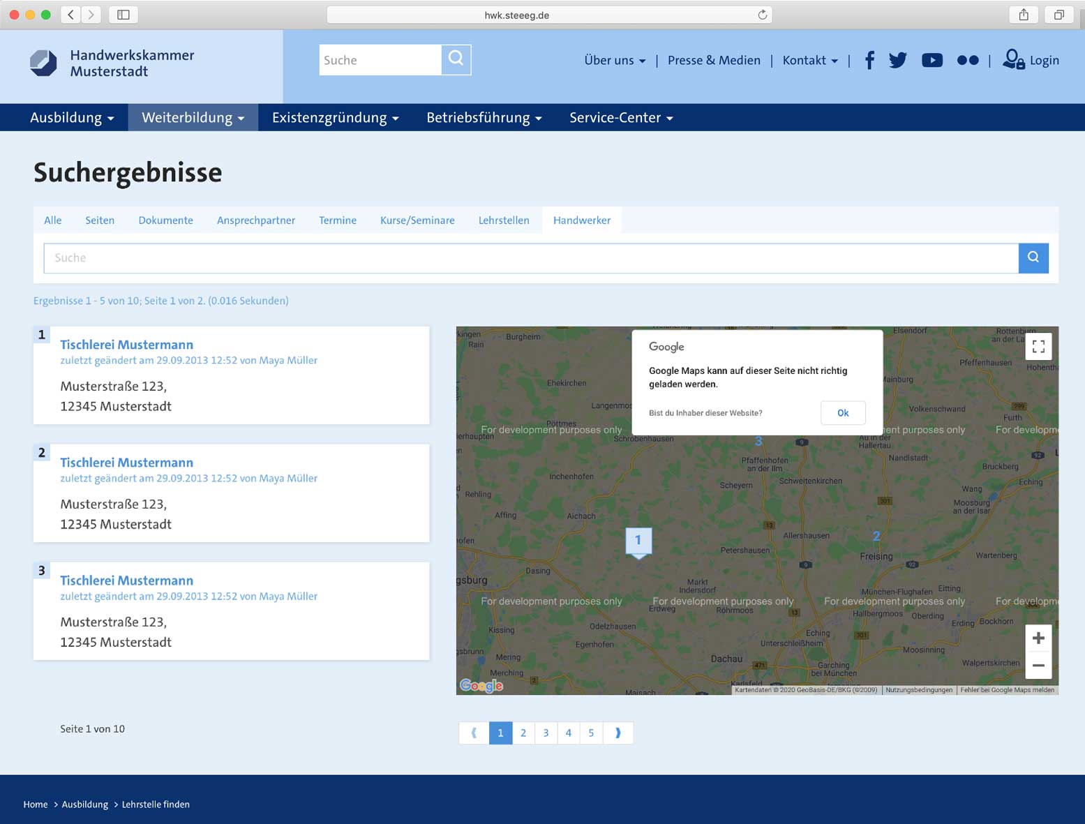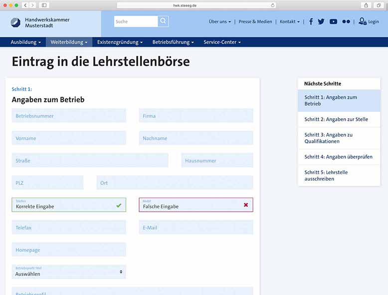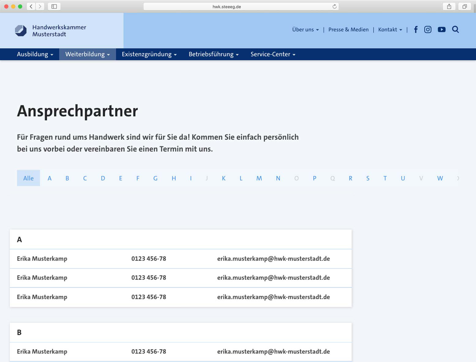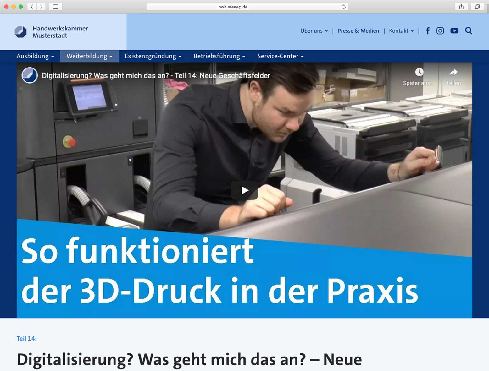 z.B. Meister. Erste Informationen teasern Unterthemen an.