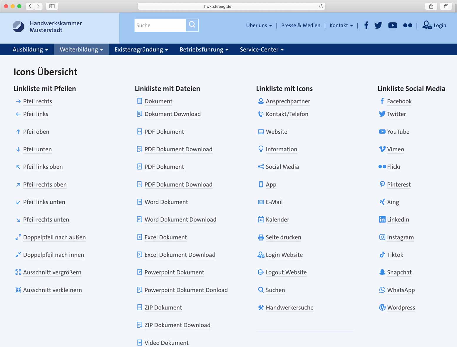 z.B. Beratungsangebote. Schnelle Erfassbarkeit der vielen unterschiedlichen Themen.